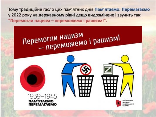 Сьогодні, в День пам’яті та примирення, ми вшановуємо подвиг нашого народу, який зробив вагомий внесок у перемогу над нацизмом. Його мужність, відвага і хоробрість ніколи не будуть забуті.
