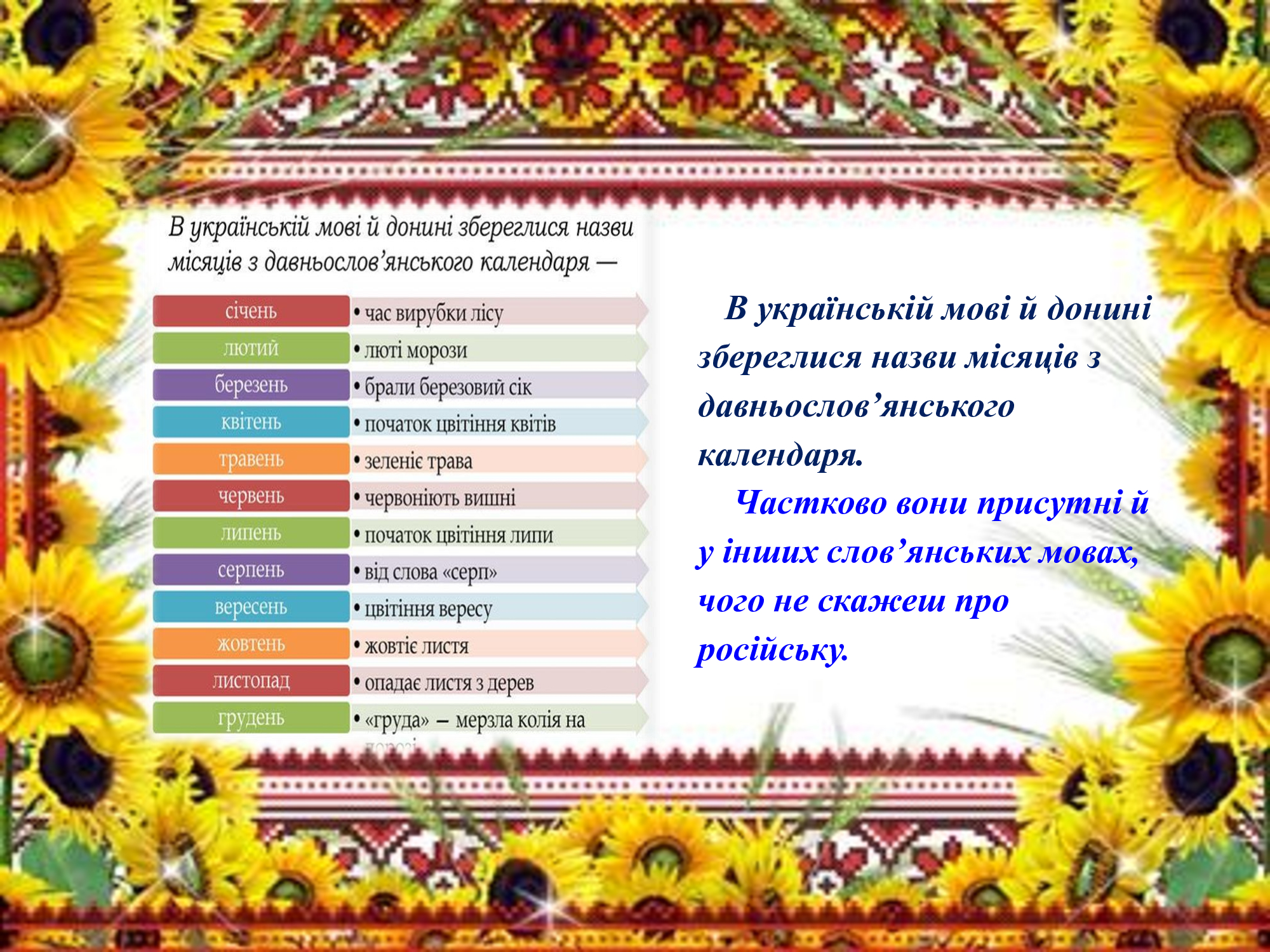 Українська мова носить у собі історію нашого народу, всю красу та міць поетичного слова. Чудова мелодія солов’я, могутня пісня лісів і полів, дитячий лепет і мамина колискова — звучить у нашій рідній мові й залишається в пам’яті назавжди. Вітаємо зі святом українського слова!