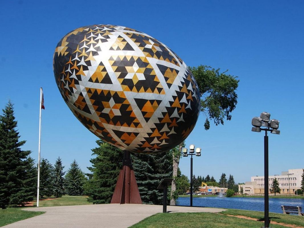 Найбільше пасхальне яйце знаходиться в Вегревіллі, Альберта, Канада. Воно важить близько 2 тонн, а його довжина – близько 8 метрів.