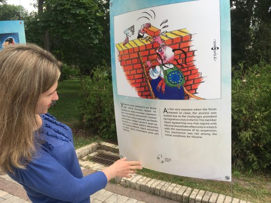 в столичному парку ім. Тараса Шевченка відкрилась виставка «Шлях України до безвізового режиму з ЄС», на якій можна ознайомитися з правилами перетину кордону з країнами Шенгенської зони.