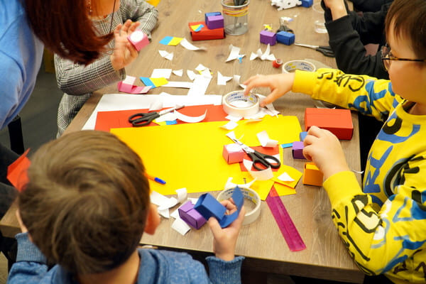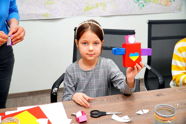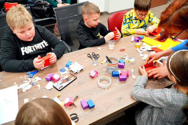Цього разу завітали вихованці від 6 до 12 років, їхнім завданням було виготовлення роботів з кольорового картону. Завдання було не просте, але через деякий час після натхненної праці, всі учасники майстер-класу могли помилуватися, завершиними роботами. Задоволення від декоративно-прикладного процесу отримали не тільки діти, а також їхні батьки та рідні.