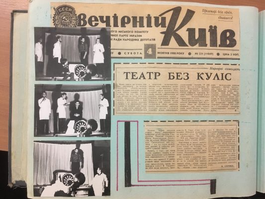 20 червня в Будинку вчителя пройшла перша зустріч-знайомство аматорів, які вирішили відродити театральну студію «Театр-на-стільцях». Вона функціонувала впродовж п’ятнадцяти років – з 1976 по 1991 р.р. при Київському будинку вчителя. Тут була здійснена ідея ярмаркового театру: комедіанти розстилають на площі килимок, перехожі збираються навкруги, починається шоу. Своєрідним «килимком» у вчительському театрі були стільці, з яких будувалися декорації вистав. Актори на стільцях, глядачі на стільцях – зал і сцена нероздільні.