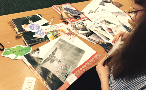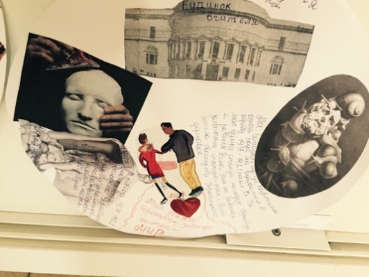 В другій половині 2016 року ми розпочали роботу майстер класів,а в 2017 в Будинку учителя створено єдиний і неповторний в місті Києві арів дитячої та юнацької творчості, який налічує більше сотні унікальних робіт виконаних у техніці колажування.