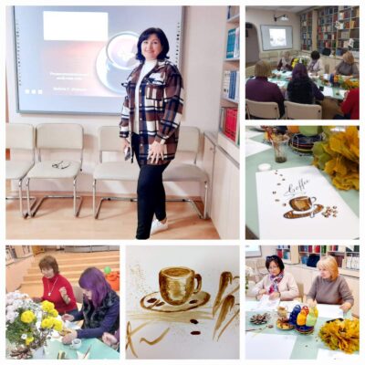 Сьогодні в приміщенні Публічна бібліотека “Сузір’я” ЦБС Оболонського району м. Київ відбулася чергова зустріч на емоційно-розвантажувальному майстер-класі «Кавовий малюнок».