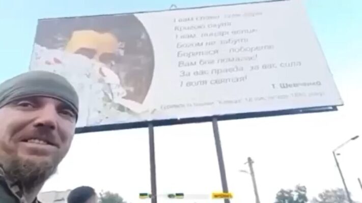 У звільненій від окупантів Балаклії українські військові здерли плакат російського змісту та знайшли під ним вірш Тараса Шевченка та його портрет. Тарас Григорович заповідає : “Борітесь і поборете!”