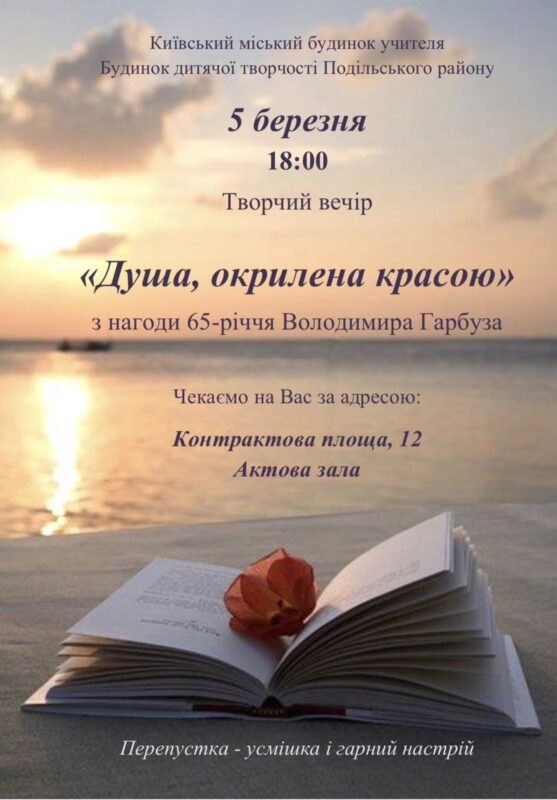 Творчий вечір Володимира Гарбуза “Душа, окрилена красою”