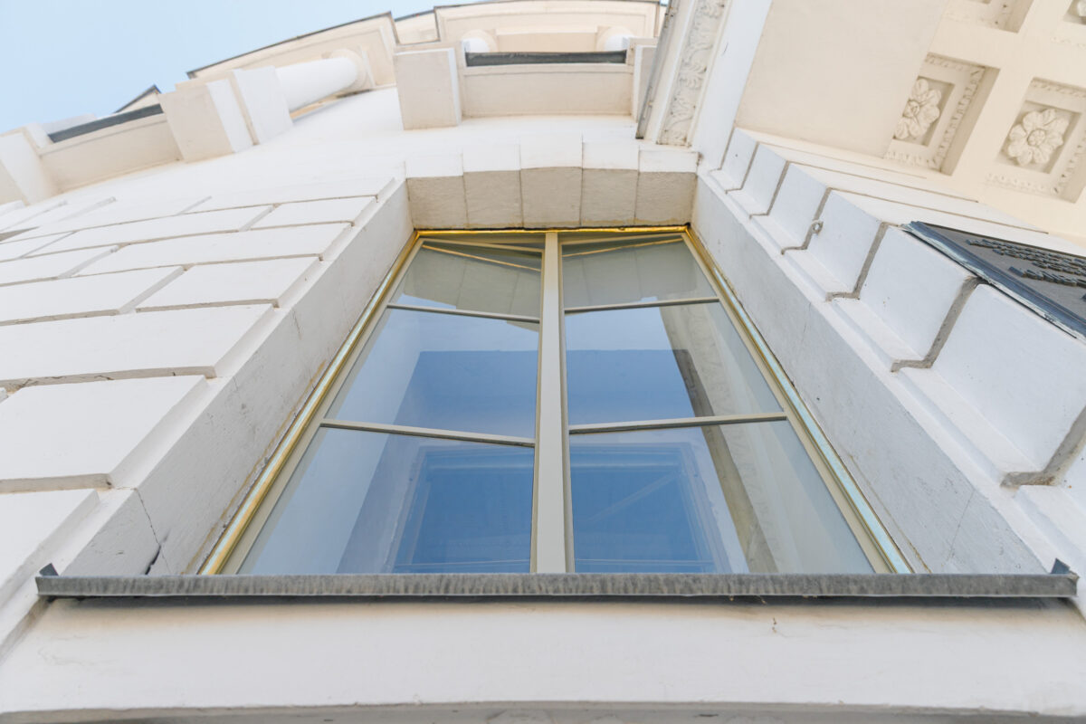 Під час протиаварійних робіт на території Київського міського будинку учителя фахівці-реставратори знайшли автентичне фарбування вікон і латунні лиштви фасадних рам, які були приховані під нашаруваннями чорної фарби. Про це повідомив заступник голови КМДА Валентин Мондриївський, інформує «Главком».