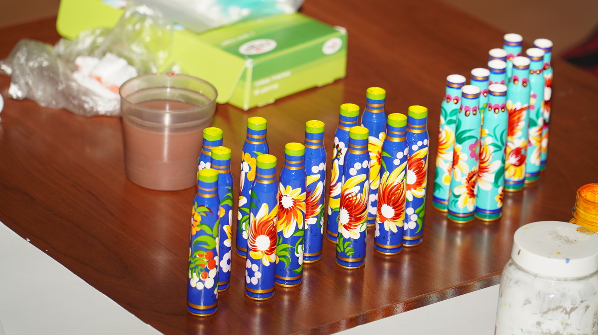 Особливого змісту цей майстер-клас набуває саме тепер, коли ми живемо у час війни. Тримати в руках гільзи, які ще зовсім нещодавно несли смерть, біль і втрати, – непросто. Але саме в цьому й народжувався глибокий сенс роботи. У процесі розпису вони змінювалися: з предметів війни ставали основою для життя, світла і краси. Квіти, орнаменти й яскраві барви ніби повертали їм інше призначення – не руйнувати, а нагадувати про силу людини, її здатність творити навіть у найтемніші часи.