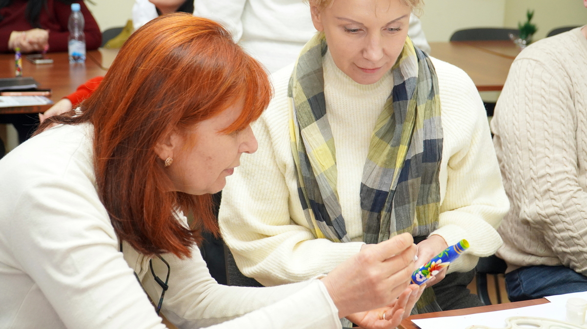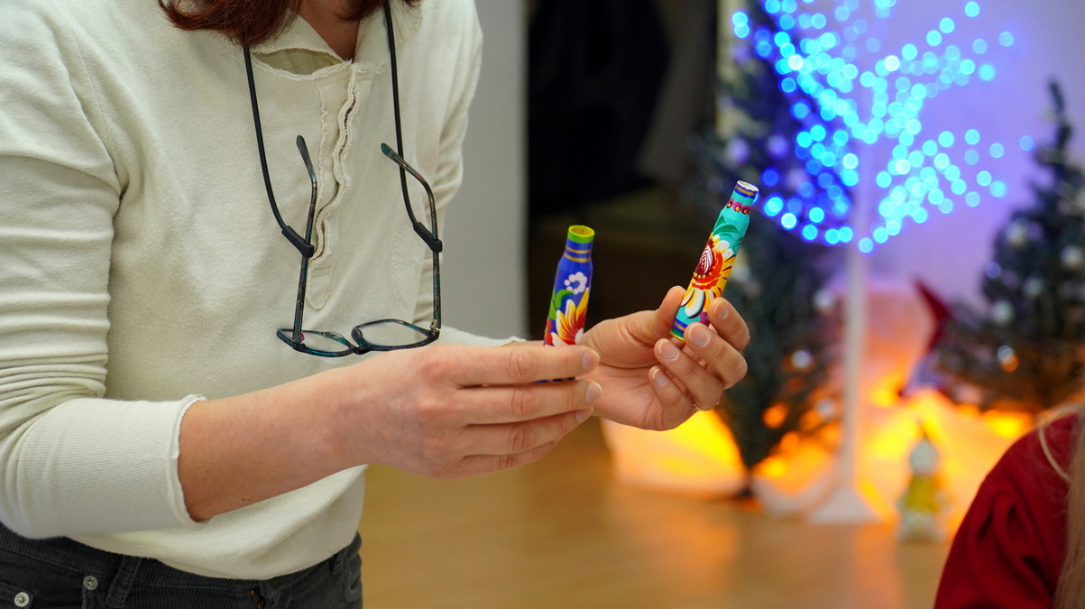 17 грудня, напередодні Новорічних та Різдвяних свят, організаційно-масовий відділ провів авторський майстер-клас художниці-оформлювачки Будинку учителя Людмили Гордієнко з розпису гільз у техніці петриківського розпису “Світло перемагає темряву”