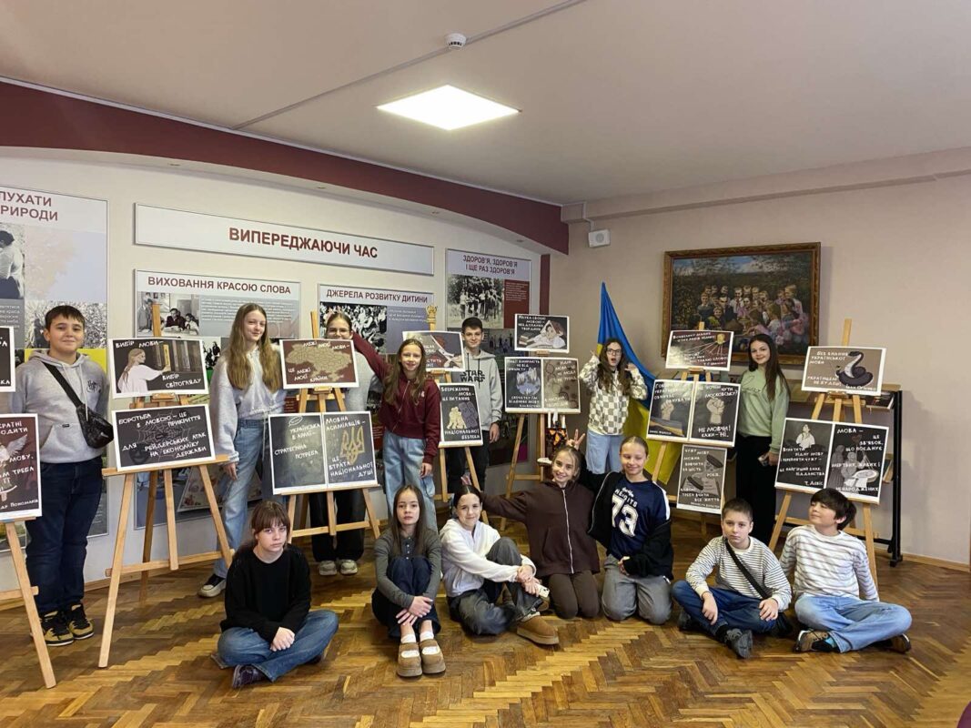 Готуючись до Міжнародного дня рідної мови, якій відзначають у світі 21 лютого, вихованці гуртка «Юні музеєзнавці» разом зі своїм керівником Світланою Любанською оформили в Музеї Василя Сухомлинського виставку плакатів на підтримку української мови. Дана експозиція створена в межах мистецько-просвітницького проєкту «Захист мови – шлях до перемоги» — «На лінії вогню: битва за національне “Я”». Авторка ідеї та організаторка Тетяна Олійник; художнє оформлення – Поліна Іваненко; за сприяння уповноваженої із захисту державної мови Олени Івановської.