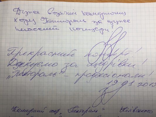 Вщерть заповнений зал, сприймав виступ «Пекторалі» бурхливими оплесками. А «Щедрик» в обробці М. Леонтовича, що звучав на завершення концерту, співали всі разом – і виконавці, і слухачі.
