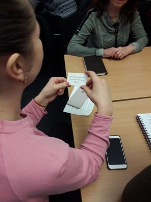 Присутні на занятті педагоги і психологи м. Києва вивчали та особисто приймали участь у комунікативних психологічних та соціальних іграх провідного дитячого психотерапевта Німеччини Гюнтера Хорна. Це ігри на картках та рухові ігри, що сприяють профілактиці емоційного вигорання вчителів, агресивної поведінки та булінгу серед дітей. Крім того, ці забави є родинними для кращого порозуміння між поколіннями.