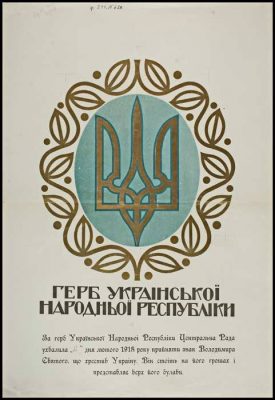 Пізніше тризуб був забутий, а повернувся він як державний символ 25 лютого 1918 року, коли в Коростені Українська Центральна Рада офіційно затвердила його як герб УНР.