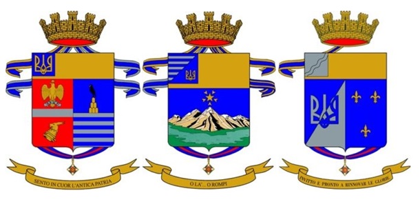 - Український тризуб присутній на гербах італійської армії. Їхнім підрозділам дозволено додавати до своїх гербів символи територій, де була отримана медаль за військову доблесть. Під час Другої світової війни 8-а Армія Італії була направлена в Радянський Союз, на територію України. Хоча тут її практично знищили, деякі все ж повернулися додому. Було сформовано нове військо, якому дозволили додати український тризуб на свої герби, як символ того, що на цій території ними була отримана медаль за доблесть.