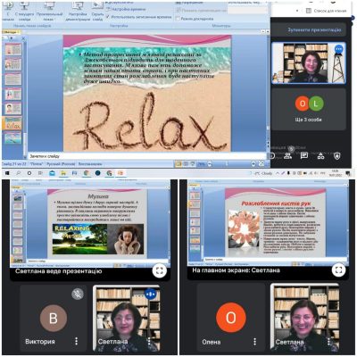 13 січня 2022 року методистом методичного відділу Київського міського будинку учителя Світланою Шумило проведено вебінар для педагогічних працівників за темою “МЕТОДИ РЕЛАКСАЦІЇ ДЛЯ ВЧИТЕЛІВ”.