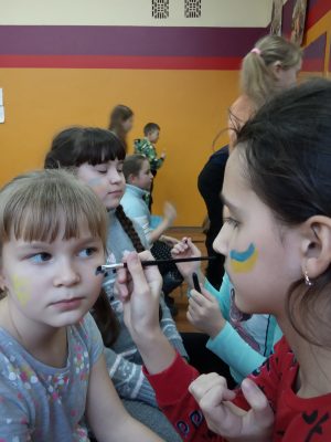 Студія акторської майстерності, 20.01. та 21.01 провела творчі та виховні заходи які стали цікавим та незвичним доповненням до шкільних заходів до Дня Соборності України. Відбулися майстер класи з гриму які пройшли у декількох групах, а також відбулося спілкування пов’язане з цією подією. Діти ділилися своїми думками та знаннями про Україну, обговорювали різні історичні події та згадували символіку. Після такого спілкування керівник студії Олександра Сухенко розповідала та показувала дітям, як малювати символіку України гримом на обличчі. Вихованці були дуже активними, проявляли велику зацікавленість, допомагали один одному і ось який результат ми отримали: