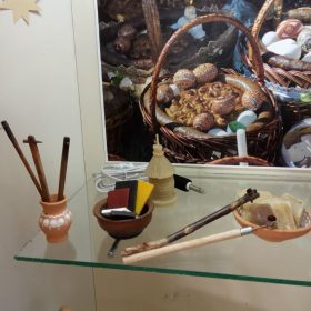 Але справжня писанка вийде, якщо попрацювати трохи з воском. Як це краще зробити за допомогою писачка розказала керівник гуртка Олександра Сухненко. Акомпаніатор Євгенія Вакуліч провела онлайн екскурсію Музеєм писанки на Прикарпатті в Коломиї і показала, які витвори мистецтва можна отримати в результаті. https://pysanka.museum/exposition/